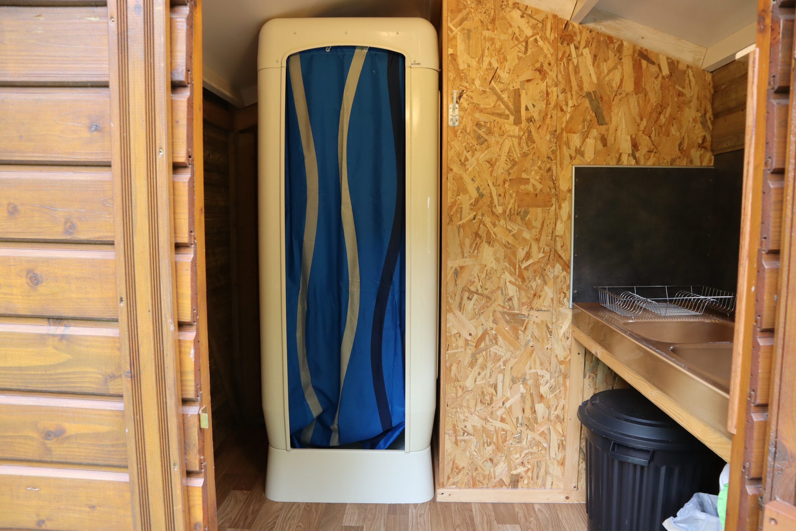 Bloc sanitaire comprenant une douche, lavabo, double évier.